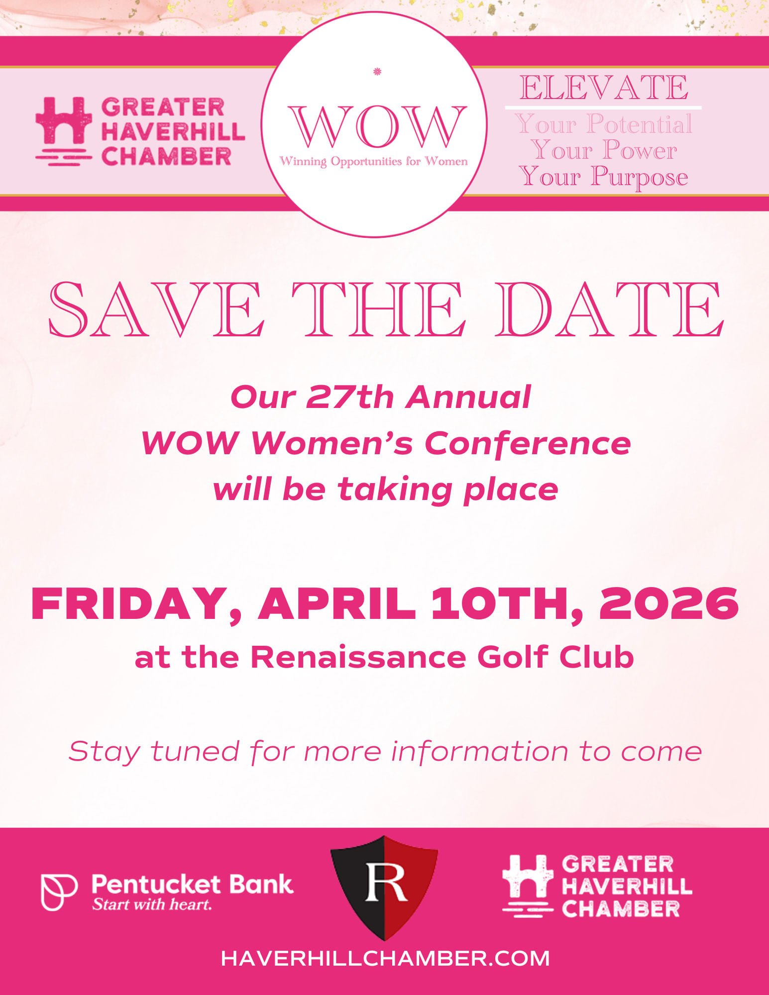 SAVE THE DATE! Our 27th Annual WOW Women's Conference is taking place on Friday, April 10th, 2026, at the Renaissance Golf Club!