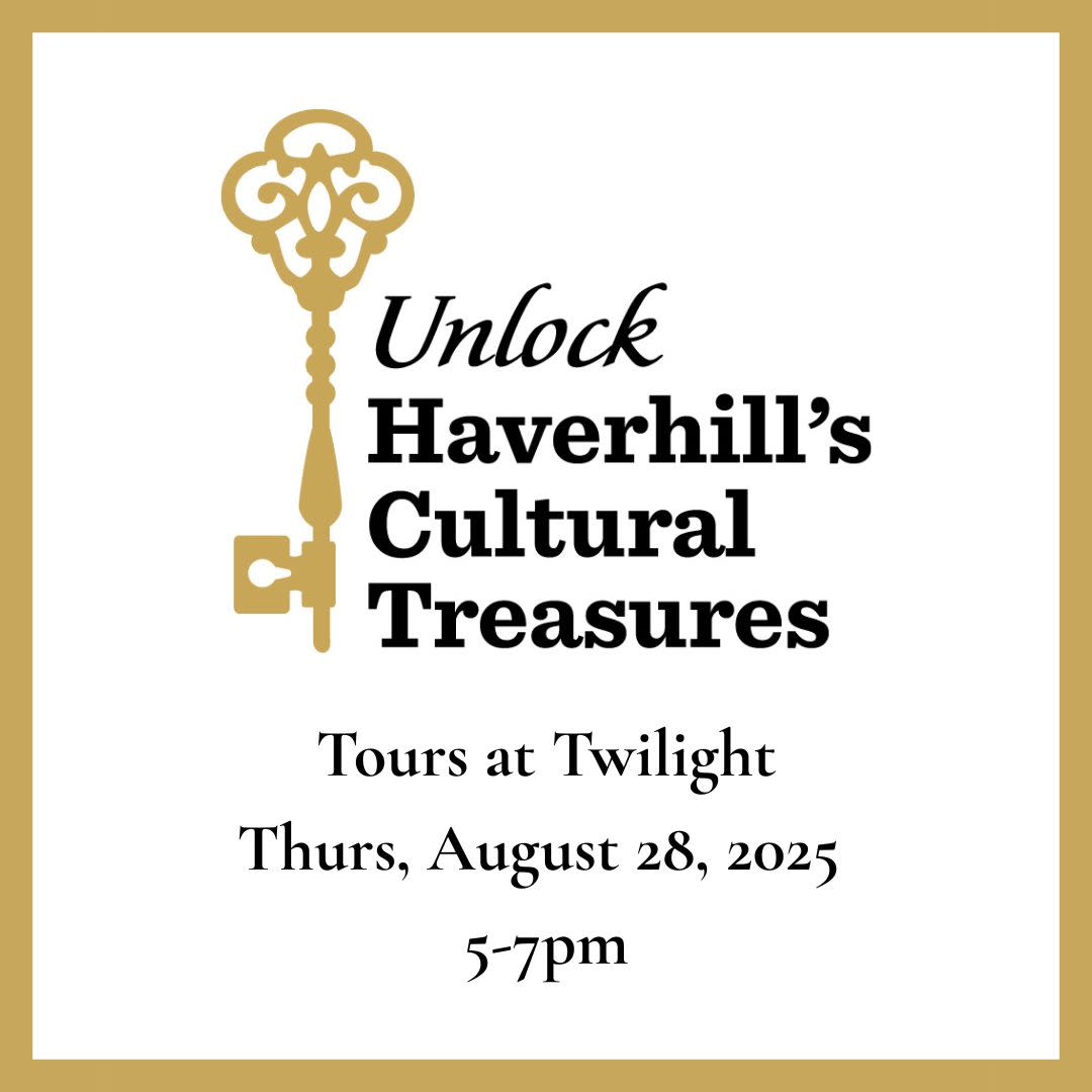Haverhill’s Cultural Treasures will be offering Tours at Twilight (5-7pm) on Thursday, August 28th under a single admission ticket. Visit as many or as few of the Treasures as you wish that evening.