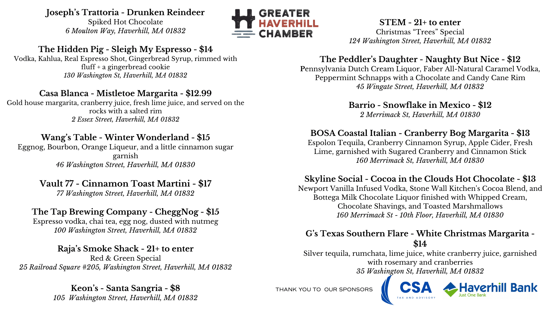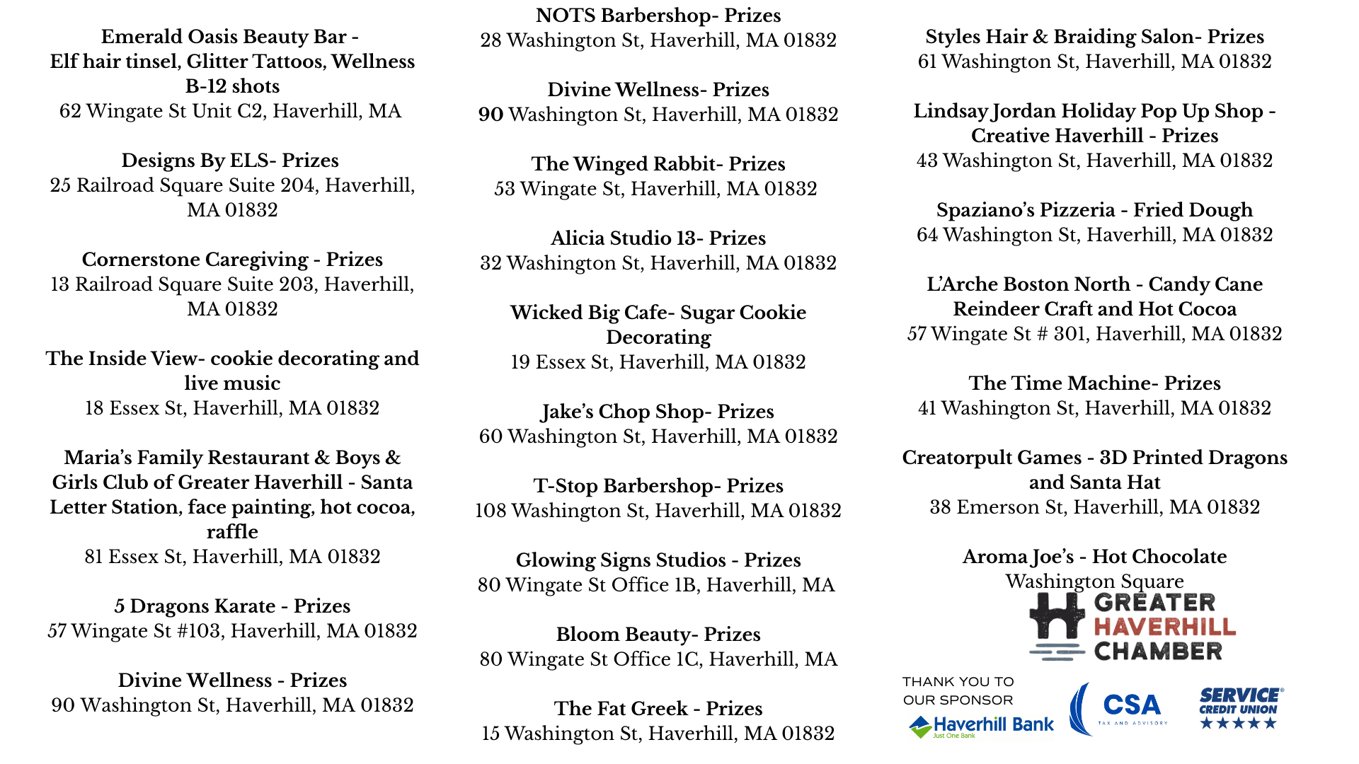 THANK YOU to CSA Tax & Advisory, Service Credit Union, Haverhill Bank, Gold Leaf Fine Jewelry, and all of the participating restaurants and businesses for helping to make tonight amazing!