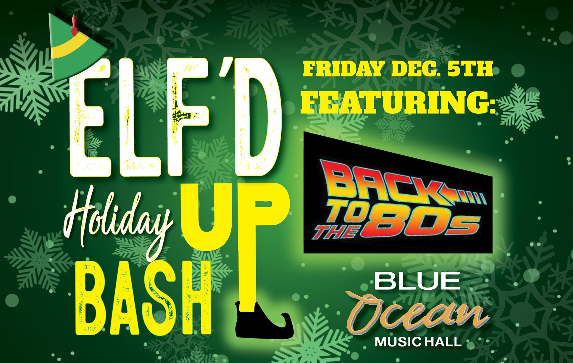 ft. Back to the 80s 8PM Doors Reserved Seating: $25 +$3 Additional Day of Show Son of a nutcracker! It’s an Elf-themed holiday bash. Festively fun holiday attire is encouraged, show us your best Buddy the ELF or Joilie-inspired look or sport your favorite ugly holiday sweater. The night features: 💚 Live music by ultimate party band Back to the 80s playing all your favorite hits from the decade of rock 💚 Welcome sampler of our themed cocktail–Cotton Headed Ninny Muggins Punch! 💚 Take a selfie! with Buddy the Elf at the Candy Cane Forest photo booth. 💚 Candy, candy canes and candy corn…sorry no syrup! 💚 Chance to be selected to compete in the Coca Cola chugging contest or to spread Christmas cheer by “Singing Loud for All to Hear” with the band! 💚 Parade of Elves and Ugly Sweater conga line dance. https://www.ticketmaster.com/event/01006331085D8123