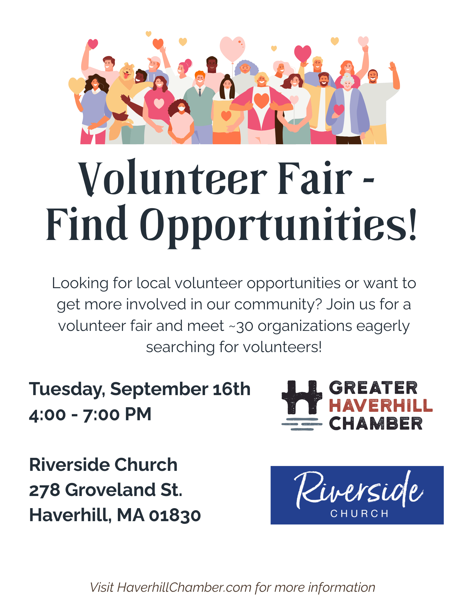 Calling all non-profits who are looking for volunteers and Community members who want to learn about different options in the Greater Haverhill Area to volunteer you or your children's time!
